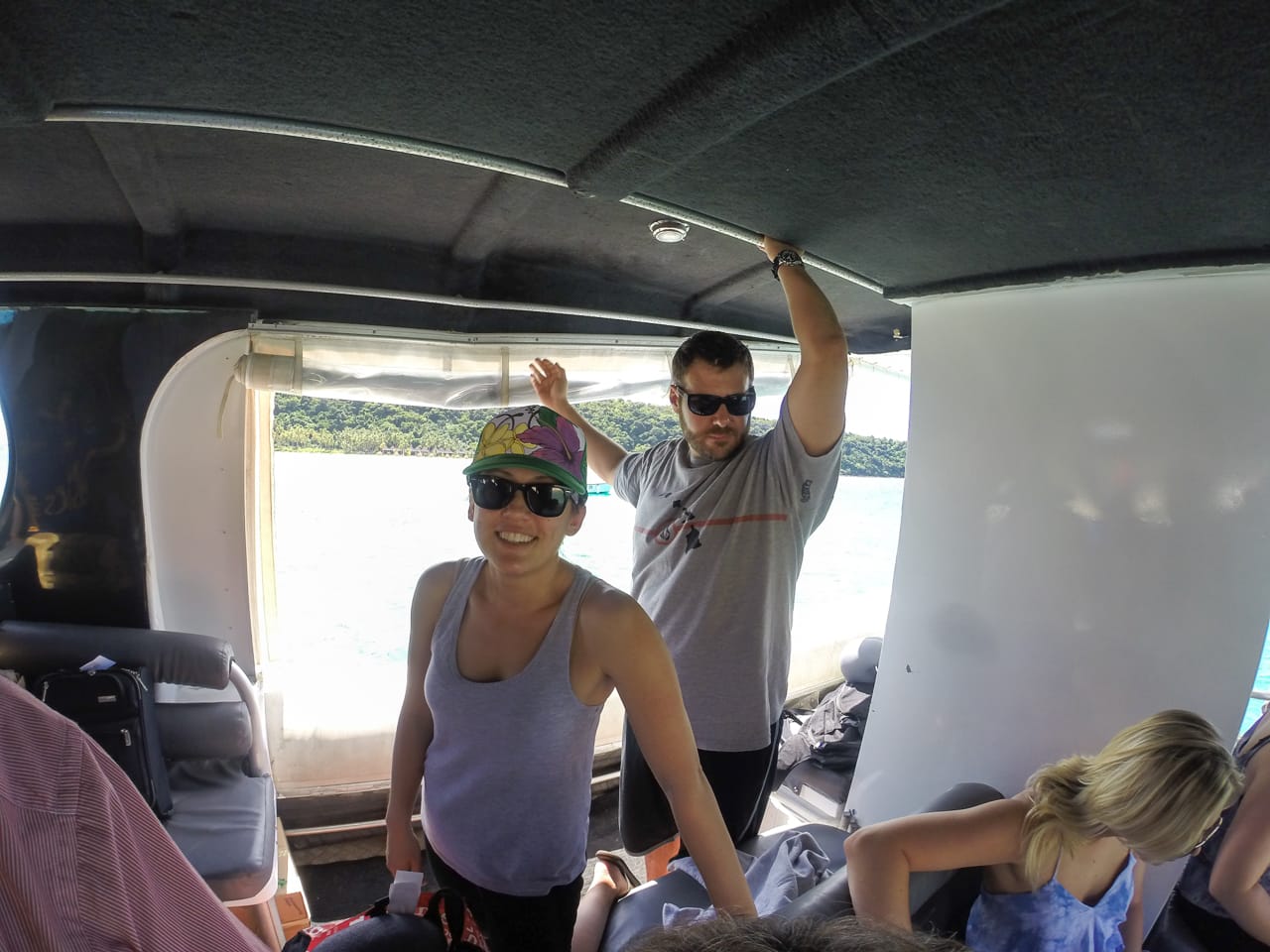 Kimmi and John, two members of Jennifer’s wedding party, were on our flight from LAX and the “Aftershock” resort boat.