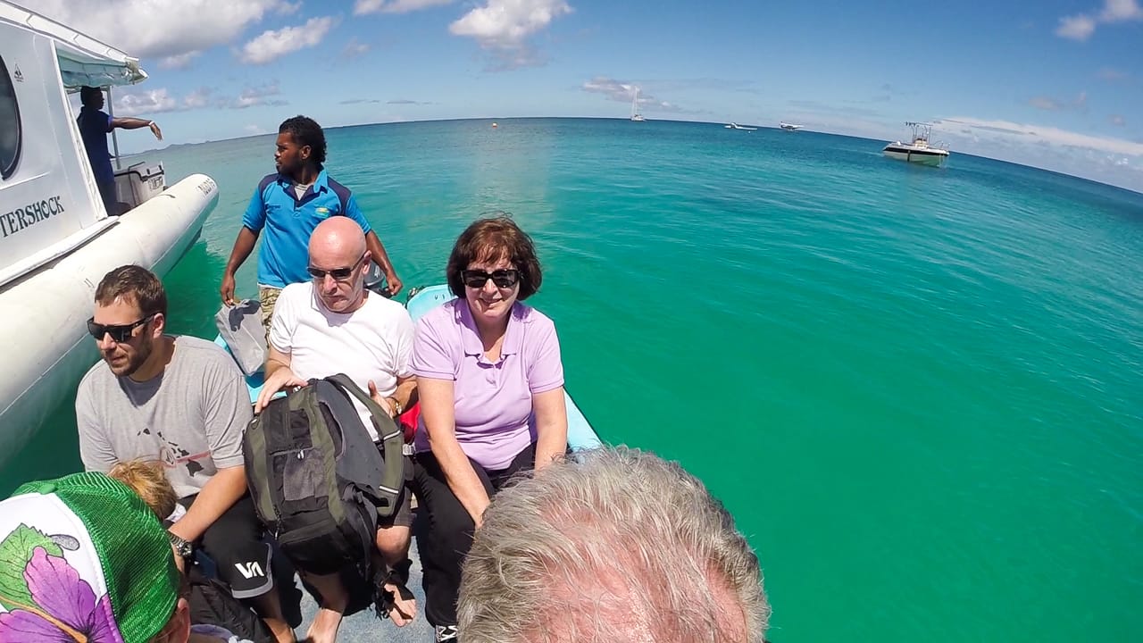 By now Jill is really looking forward to getting on solid ground. Pete looks as if he will sunburn the top of his head if he doesn’t get a hat soon.