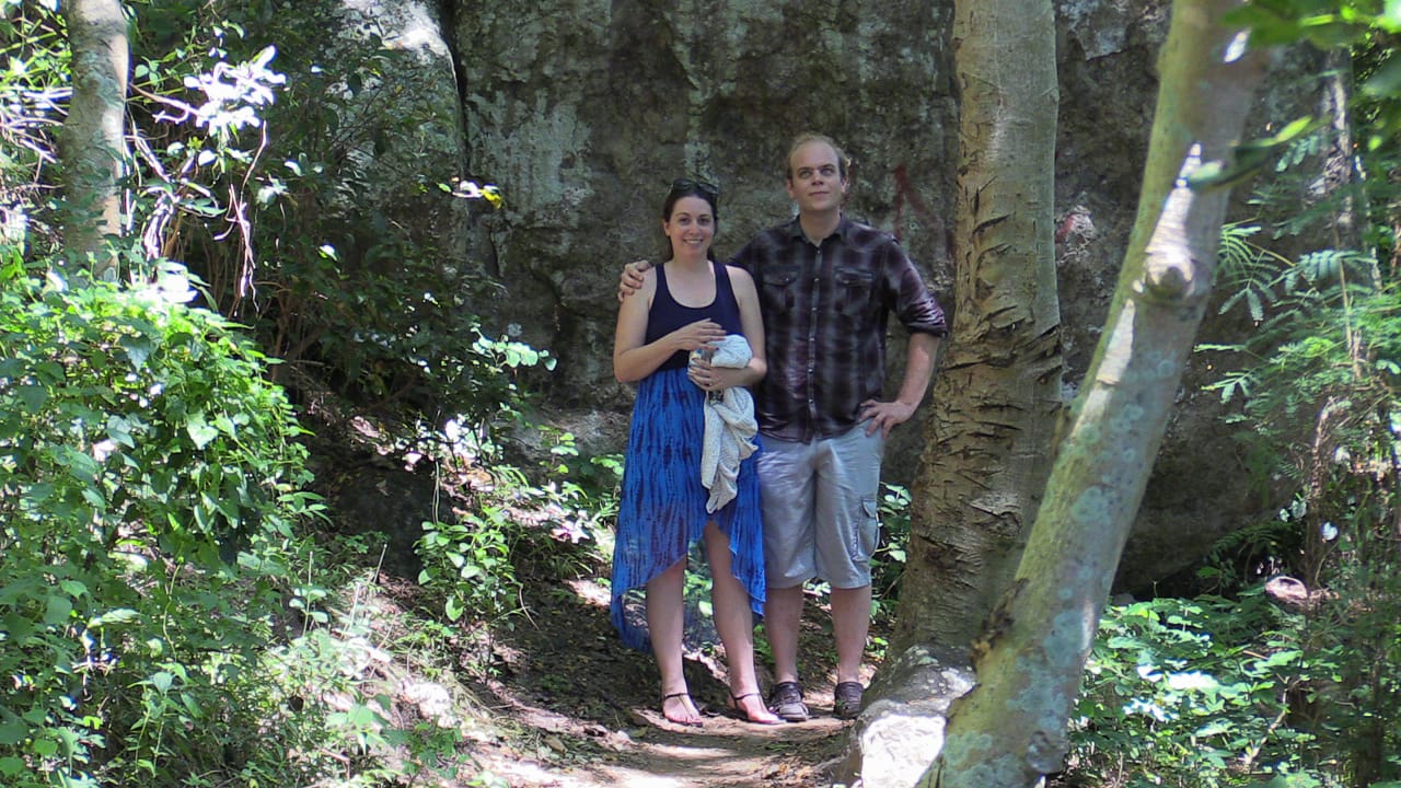 Jason, Ann, and Kat (a girl from Maine doing outreach work in the village) waiting to enter the church.