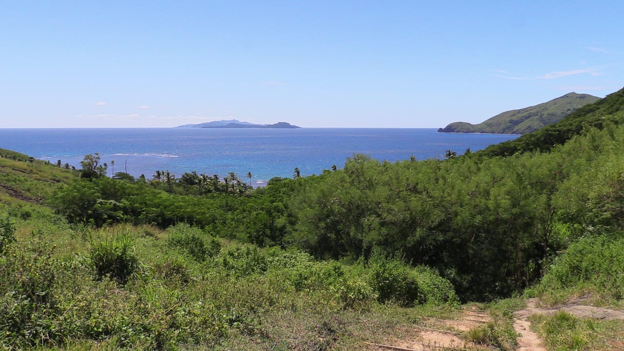 As we walk down the trail from the peak, we see the village beach in the distance.