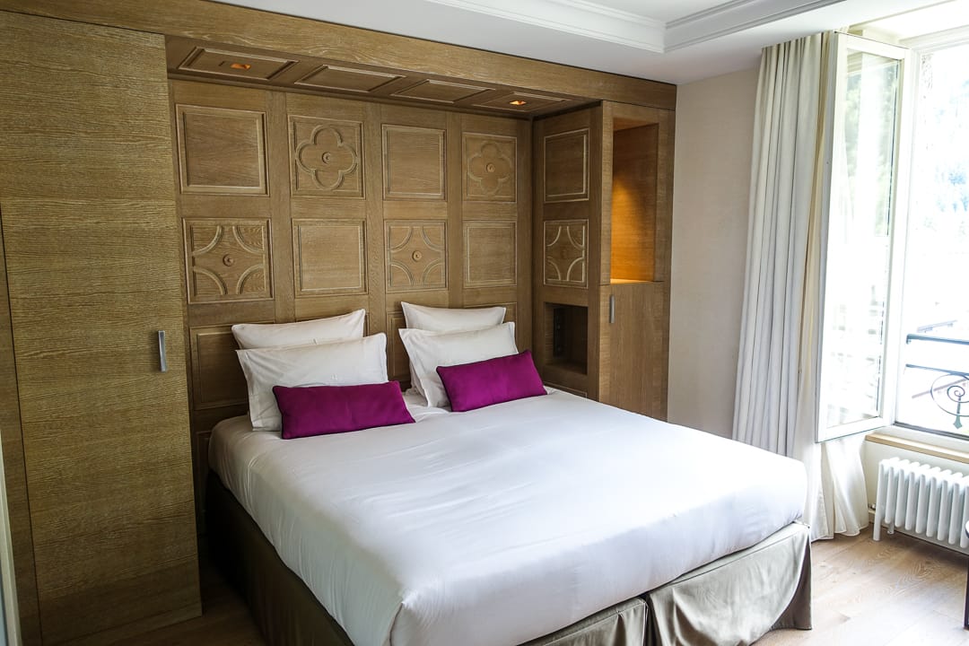Our high-tech chamber had bedside cubbies adjacent to outlets for all our electronics.