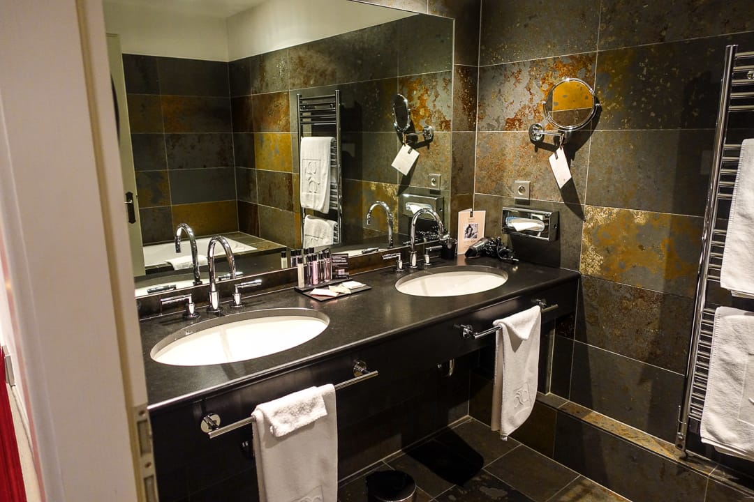 The interior was unusually spacious. The hotel left a bottle of Alsatian wine for us, gratuit. Believe it or not, this was not a 5 star hotel.
