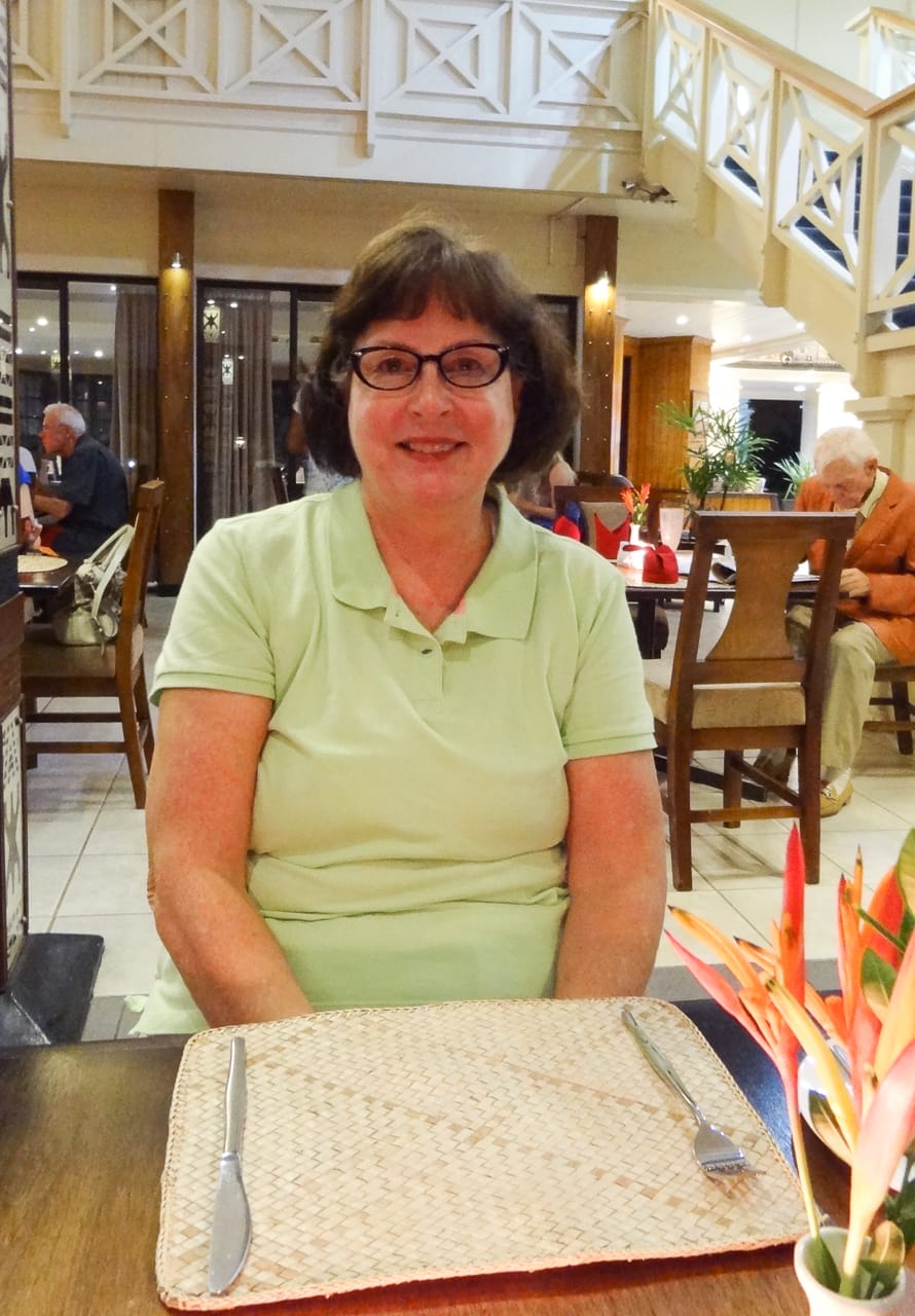 Jill poses for a snapshot while we wait for dinner… Our flight to Auckland, New Zealand leaves in the morning..