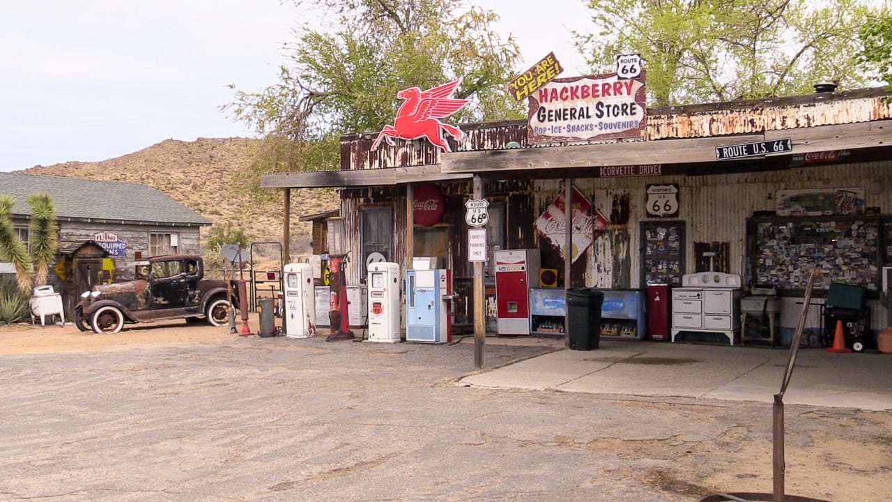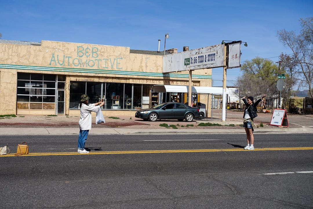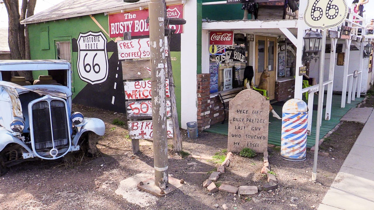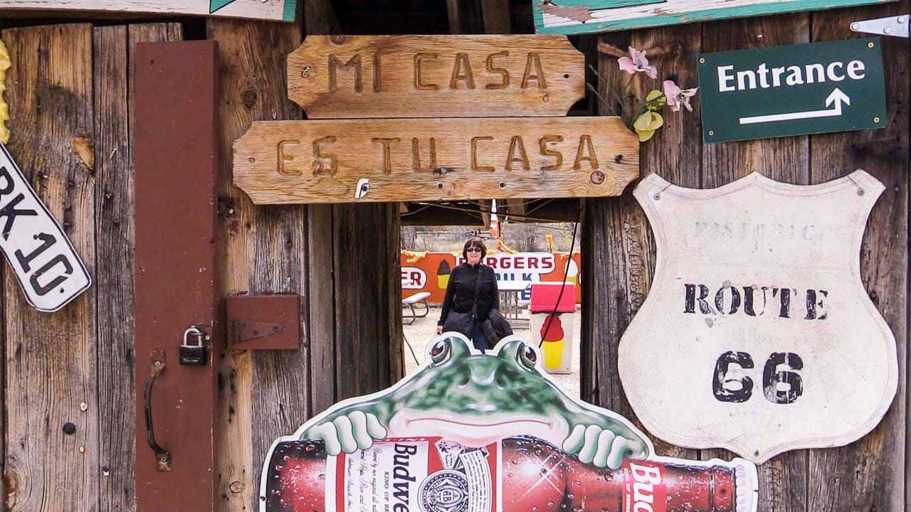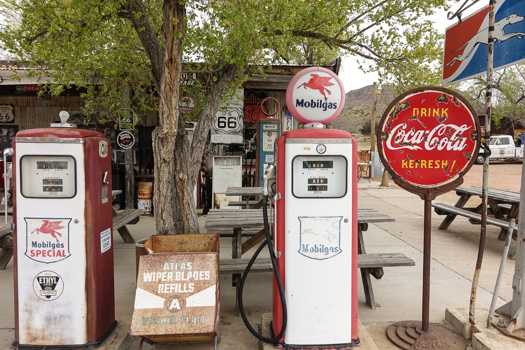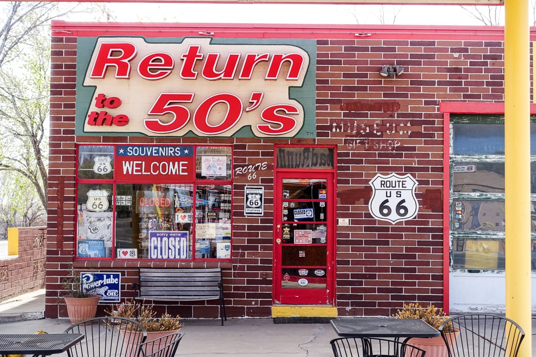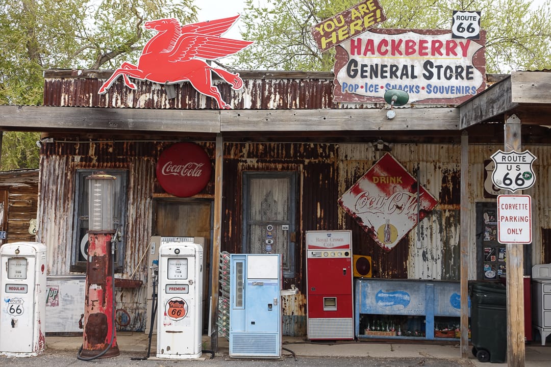 The old gas pumps no longer service travelers, but the owners of the store love to share stories about the Mother Road.