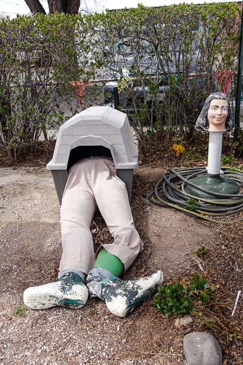 The whimsical backyard of the Snow Cap. A RTE 66 interpretation of being in the dog house.