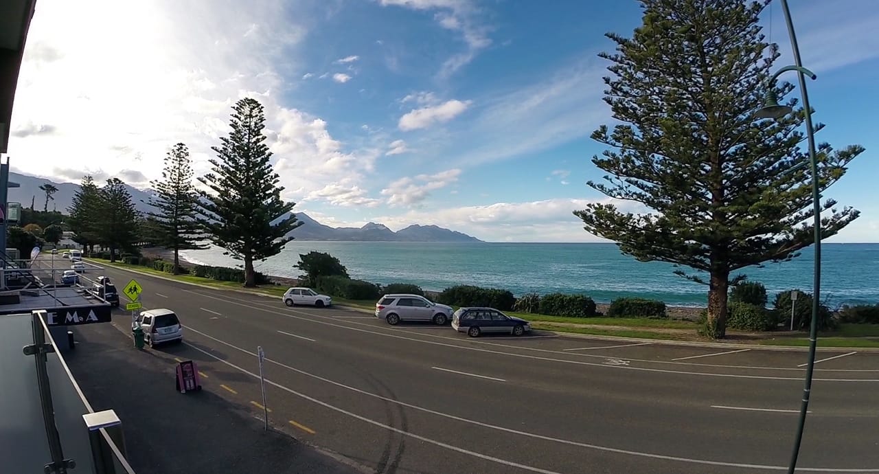 View from our hotel room in Kaikoura. Kaikoura is a famous marine wonderland, full of sperm whales, lobsters, albatross, dolphins, and fur seal reserves.
