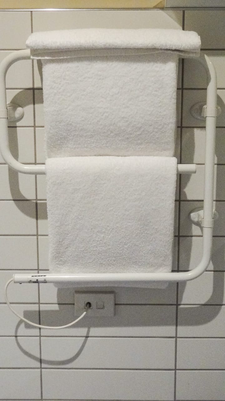 Love the heated towel racks; towels dry quickly this way. Some inns even have heated floors. Dual-flush toilets (for water conservation) are the norm here, but any water saved by them is wasted on all the huge spa bathtubs that we saw, which use tons of water. GO FIGURE.
