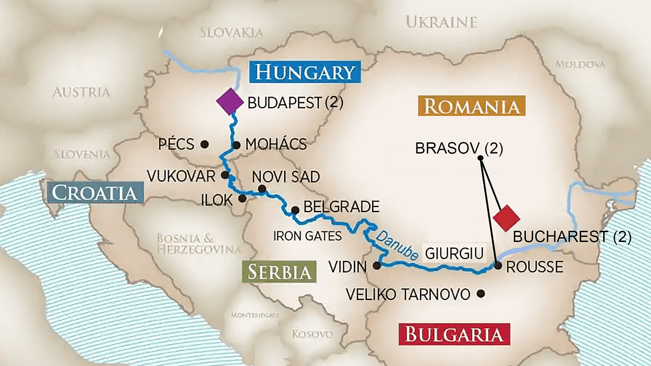 Eastern Europe has been on our travel bucket list from its inception. Perhaps it has to do with a desire to gain better insight into our “roots.” Pete’s father immigrated from a rural area to the north of Transylvania known as the Duchy of Bukovina at the time of his birth. Bukovina was a constituent land of the Austrian Empire and a Cisleithanian crown land of Austria–Hungary. After WWI the area became part of greater Romania. Today the area is part of western Ukraine. During our visit to Brasov in Transylvania we came within 400 km of his birthplace. Jill’s mother family immigrated from Belarus. Traveling along the Danube river, east of Budapest, allowed us the opportunity visit several countries, Croatia, Bulgaria, Serbia, and Romania providing us a glimpse of life today in Eastern Europe.