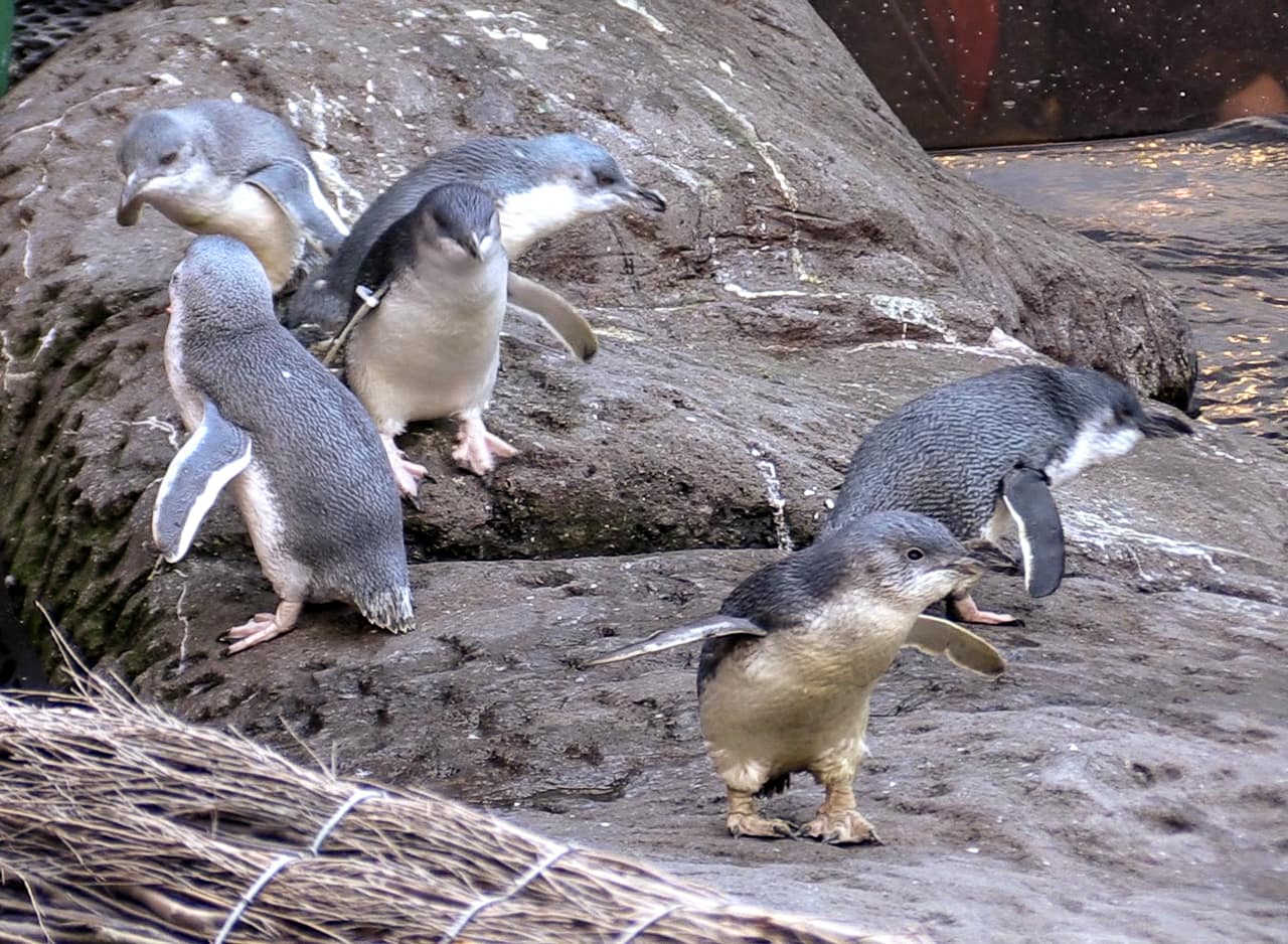Next we toured the center’s Antarctic simulation exhibits. We watched these blue penguins being fed. Then we were ushered into a 4D theater that simulated a ride on an icebreaker at the South Pole. We rocked back and forth, crashed into icebergs, blown by gale force winds, were sprayed with ocean mist & bird poop (we all screamed), were threatened by melting icicles and delighted by thousands of penguins. Pete kept trying to wipe his 3D glasses, but could not keep up with all the water, wind, and scat.