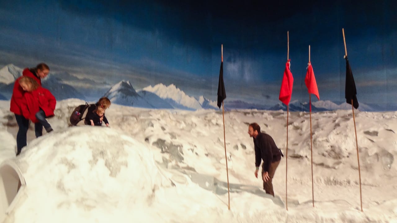 Then Jill was outfitted in Arcticwear (replete with rubber booties) and walked into nan Arctic wind chamber to get a feel for the climate. BURRRRRR!