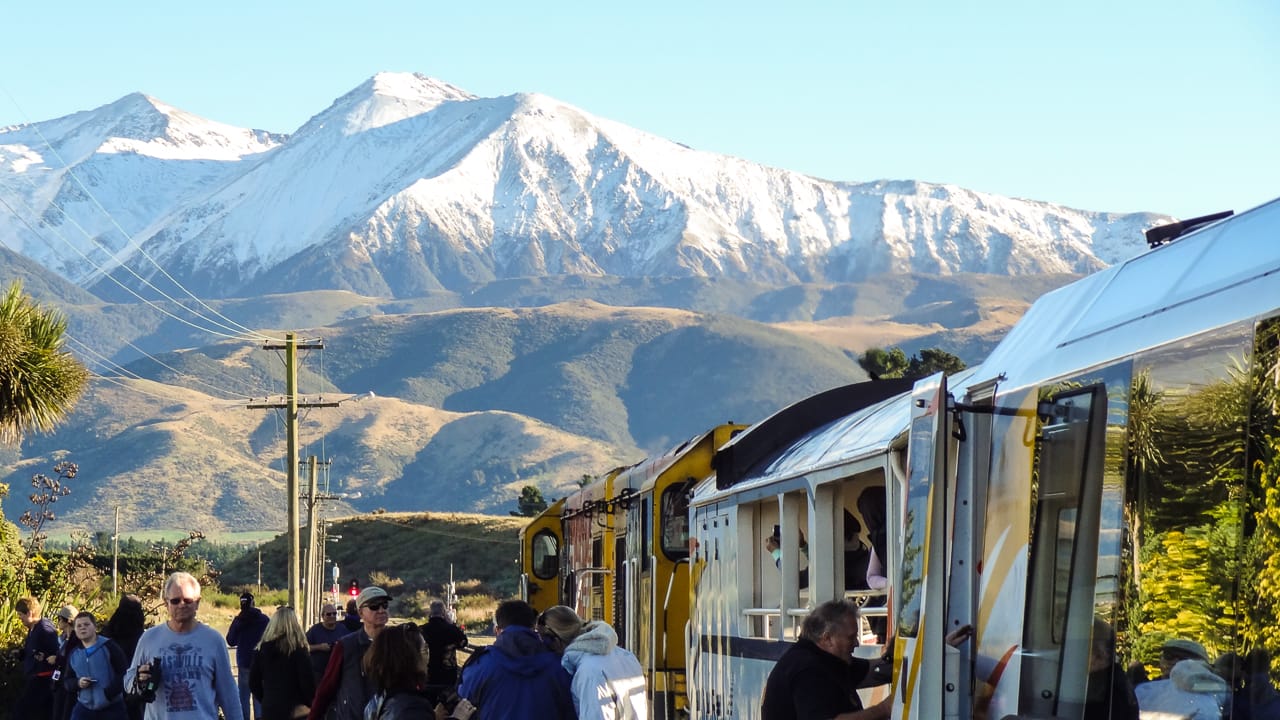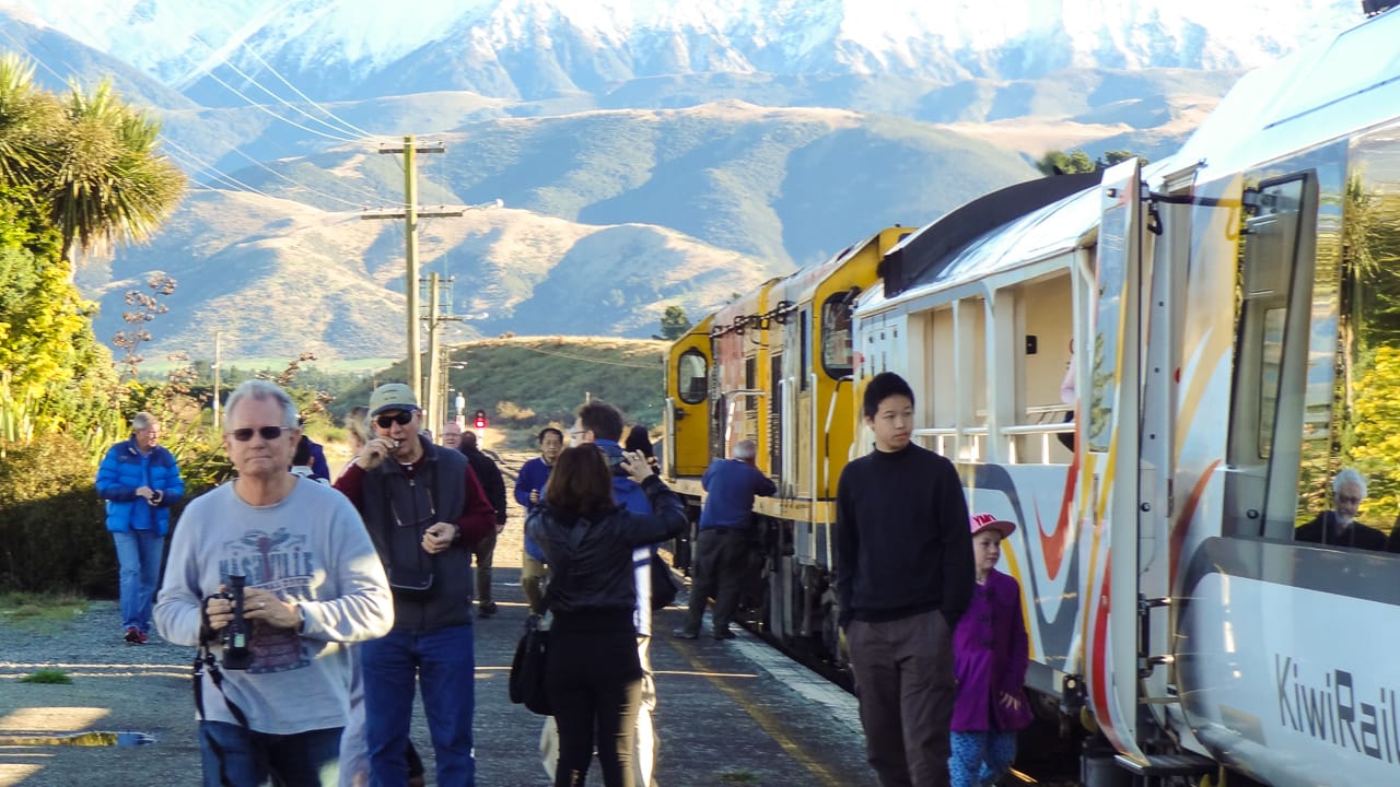 All aboard the Transalpine Railway. It transported us across the Alps to the Tasman Sea. This trip took 4.5 hours.