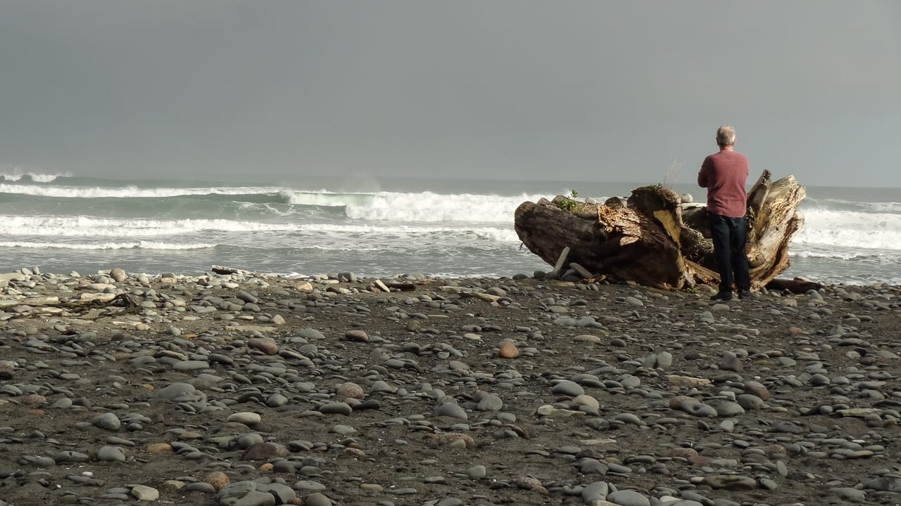 Pete, standing on the black beach and wishing we could spend more time here, gazes one last time at the sea.