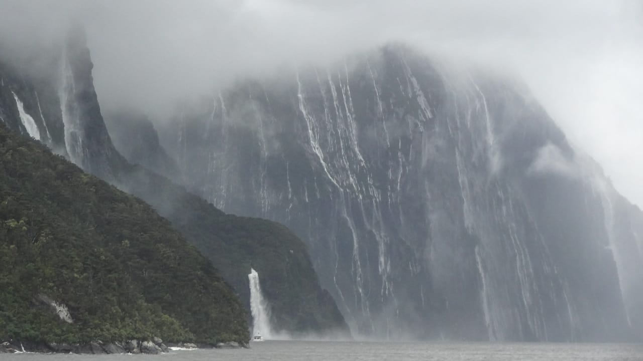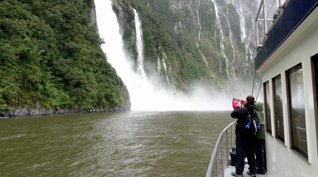 We boarded a boat at Milford Sound.