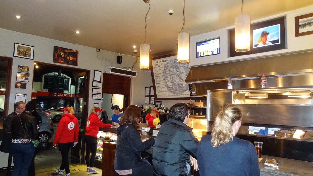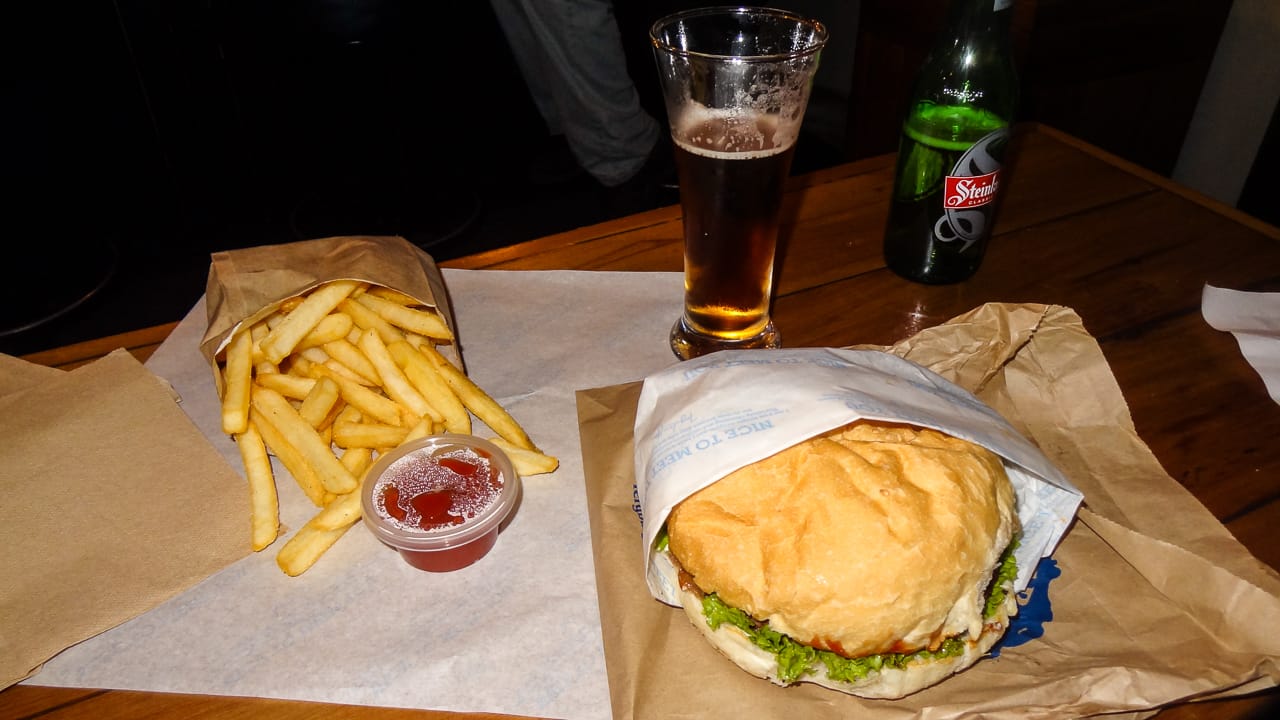 Marsha, we did it for you: After a long day of traveling by bus, we went to Fergburger, the world famous burger joint in Queenstown.