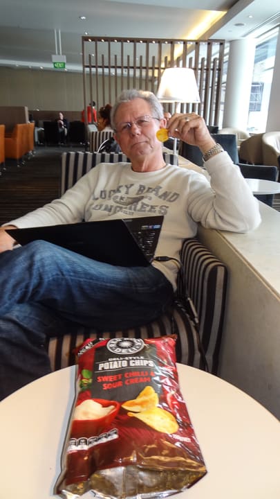 We left Christchurch at the crack of dawn the next day. We had a 5 hour layover in Sidney, so we checked into the one of the lounges and caught up on our blog. Marsha wanted us to bring back her favorite chips (Red Rock Deli – Sweet Chilli [sic] and Sour Cream) that she cannot find in the states. Sorry, Marsha, but the bag burst open as a result of the pressure in the plane’s cabin and we were forced to eat them. They were tasty!
